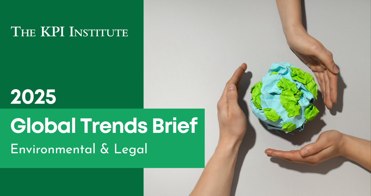 The 2025 Global Trends Brief by The KPI Institute outlines the key forces—geopolitical, economic, sociocultural, technological, environmental, and legal—shaping organizational strategy. While the first four dimensions are transforming the workforce and operations, the environmental and legal factors add further complexity to strategic planning.